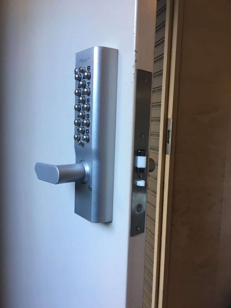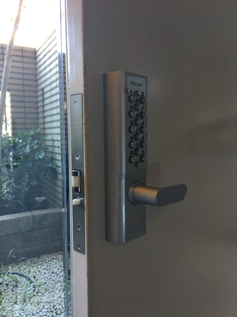 TOP ▸ 日々の実績 ▸ マンション・駐車場・両面テンキー 2019.03.17 マンション・駐車場・両面テンキー 今回は、かなり特殊なパターンで 両方からの入室を制限したいとの事で、 鍵ではなくテンキーにしたい、また安価に納めたいとのご相談でした。 メーカー受注生産品ですが両面テンキーのキーレックスを設置してきました。(納期約1ヶ月) 出る時と入る時の暗証番号は、別々の設定にもできますが、今回は同じ設定にしてあります。。 もちろんドアが閉まると自動的に鍵はロックされます(自動施錠タイプ) 日々の仕事実績一覧へ戻る