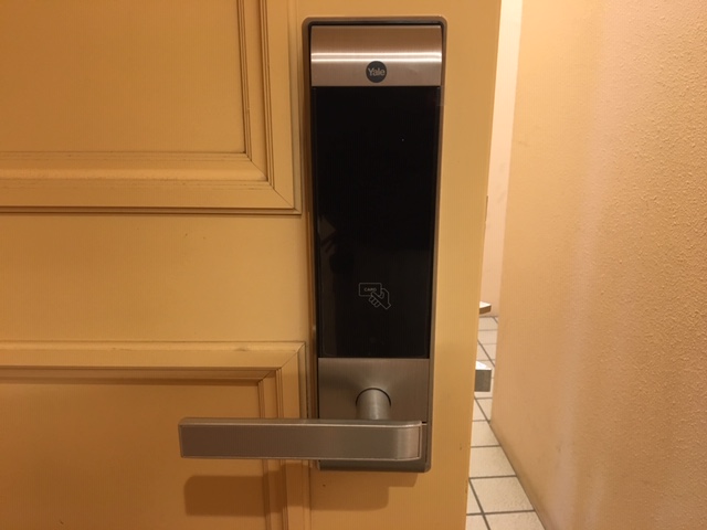既存のプラスチックカード錠から非接触カードリーダーへの切り替え工事でした。20室を約3日で施工。