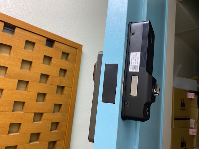 TOP ▸ 日々の実績 ▸ ビル 間仕切ドア 電池錠交換 EPIC 2021.05.21 ビル 間仕切ドア 電池錠交換 EPIC 以前使用していた電池錠が調子が悪くなったため、新しいものを設置したいというご依頼でした。 電池錠も進化を続けており、今回選定した製品は、 ・暗証番号 ・カード ・指紋 ・スマホアプリ と開錠方法が多岐に渡ります。 カードやスマホアプリであれば、非接触キーとなるので、コロナ対策にもなります。 また以前の電池錠の塗装跡がはみ出る恐れもありましたが、ほぼ隠すこともでき、お客様も喜んでおりました。 日々の仕事実績一覧へ戻る