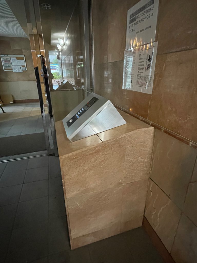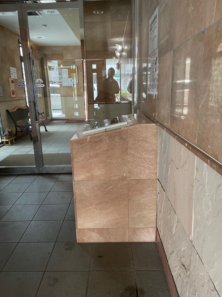 もともとカメラ付きでしたが、新築時の設計で集合玄関機が上を向いている為覗き込まないと顔が映らない状況になっていましたので、皆さん顔が映らなくて不満に思われていたようです。今回ご提案して特注で台(ステンレスヘアライン仕上げ)を作成して顔が見えるようにしました。入居者様からは皆さん今まで見えなくて困っていたのに、画像もきれいで見えるようになって良かったと喜びのお声を頂きました。